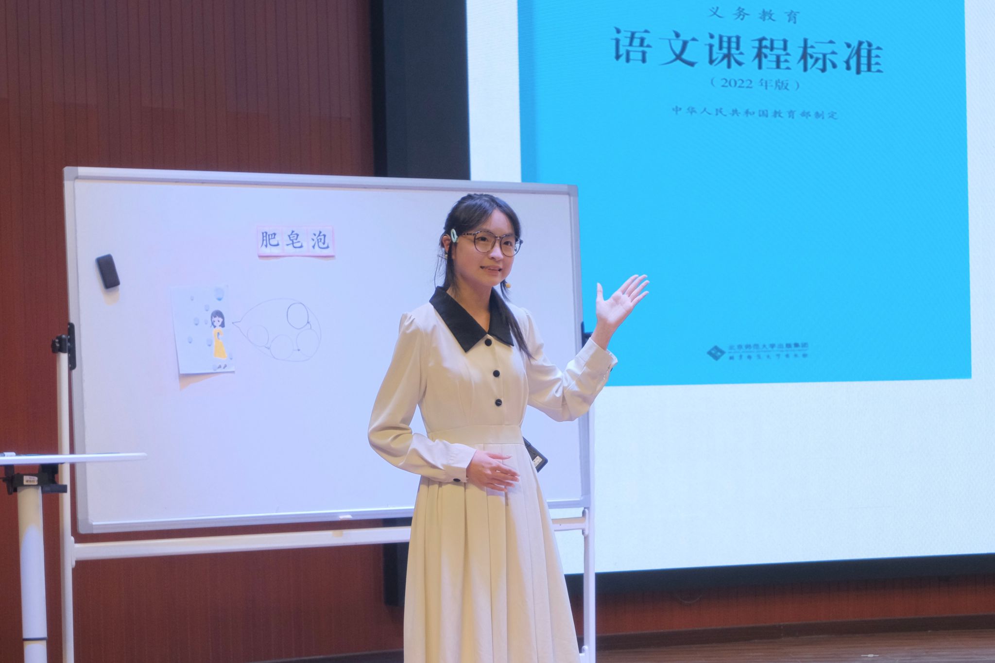 第二个环节中,写意花鸟画与毛笔书法共展笔墨神韵,引得师生们定睛欣赏、低声赞叹;《海岬春瓮》朗诵用文字浸润文学意境,带领全场观众沉浸于文字构筑的诗意世界;《肥皂泡》说课环节更是将活动推向创新实践的高潮,通过系统阐释新颖的教学理念与实践方法,充分展现了公司师范生的创新教学理念。