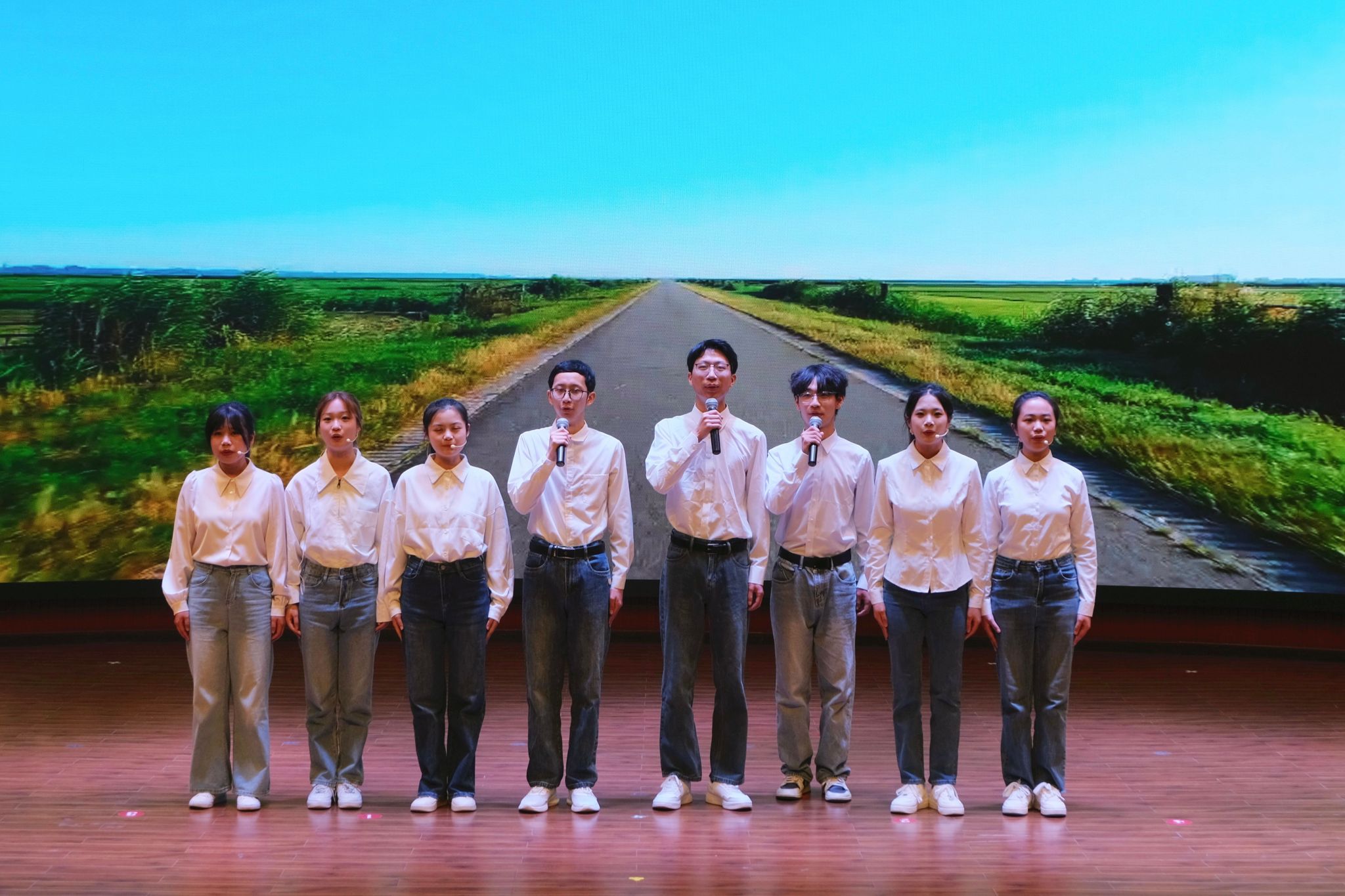 最后,伴随着气势磅礴的音乐缓缓响起,小学教育专业的同学们以饱满的精神状态登上舞台,在聚光灯的映照下齐声朗诵《我走在早晨的大路上》。字字句句彰显着开拓进取的豪情壮志,铺陈出对公司未来发展的坚定信心,为本次师范生技能展演画上了圆满而激昂的句号,现场掌声雷动,久久不息。