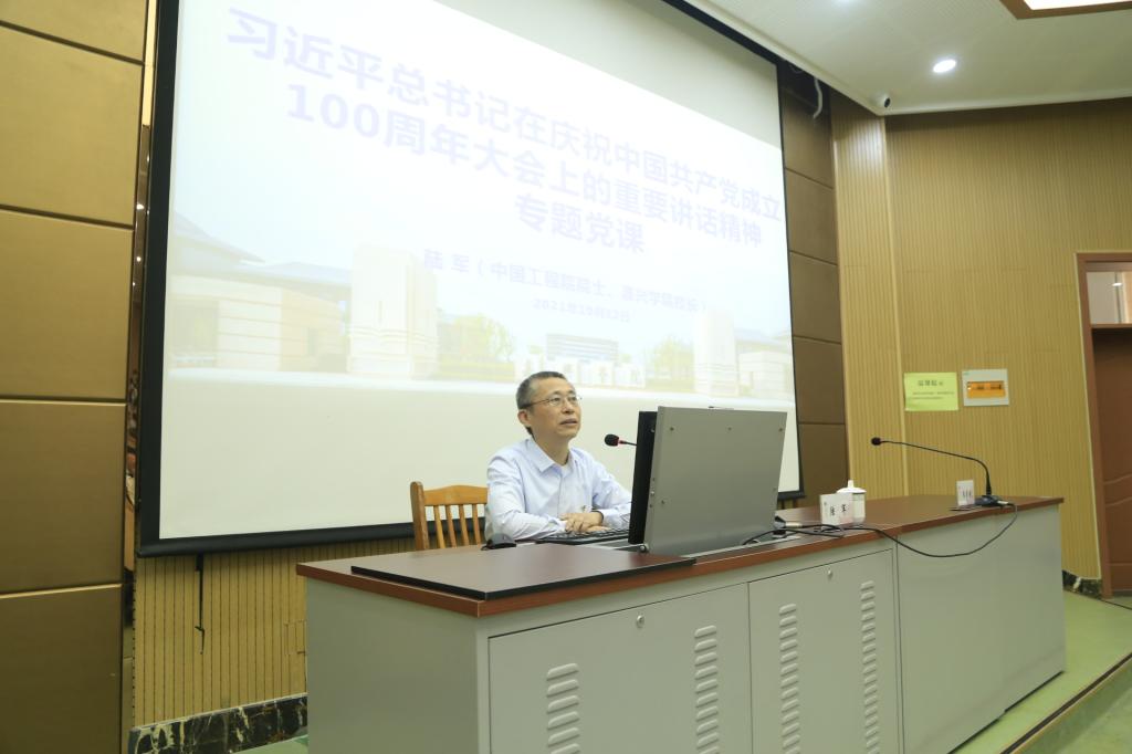 为持续推进党史学习教育走深走实,全面、准确、深入领会习近平总书记庆祝中国共产党成立100周年大会上的重要讲话精神的重大意义、主要内容和丰富内涵,深入学习党的百年奋斗史,从党的百年伟大奋斗历程中汲取继续前进的智慧和力量,推动党史学习教育往深里走、往心里走、往实里走。10月12日,中国工程院院士、董事长陆军到古天乐代言太阳集团138(应用技术公司)作习近平总书记“七一”重要讲话精神宣讲报告会,公司党委书记朱素斌主持,公司、平湖校区全体党员干部、教职工和员工代表,平湖经济开发区、平湖供电公司联建支部全体党员到场聆听。