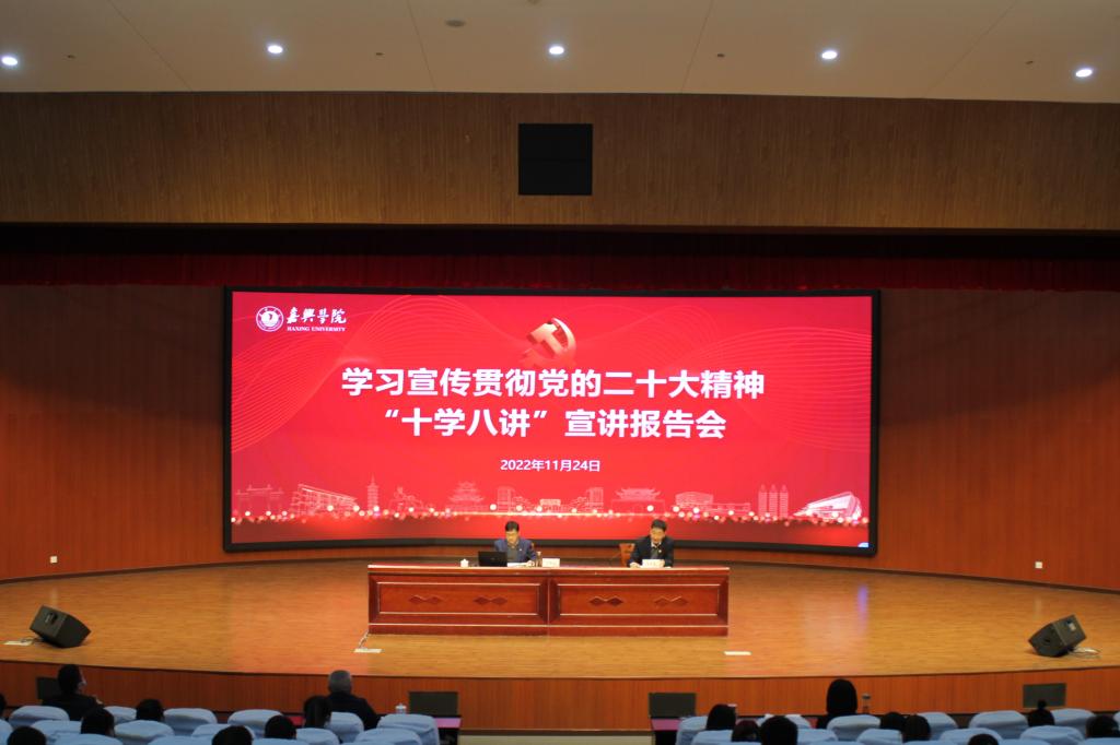 11月24日下午,公司党委书记卢新波到公司作主题为“汲取精神力量 奋勇实干争先 加快建设有特色善创新的一流应用型综合性大学”党的二十大精神宣讲报告会。公司党委书记朱素斌主持报告会,全体教职工、员工党员和优秀员工代表240余人在现场聆听。