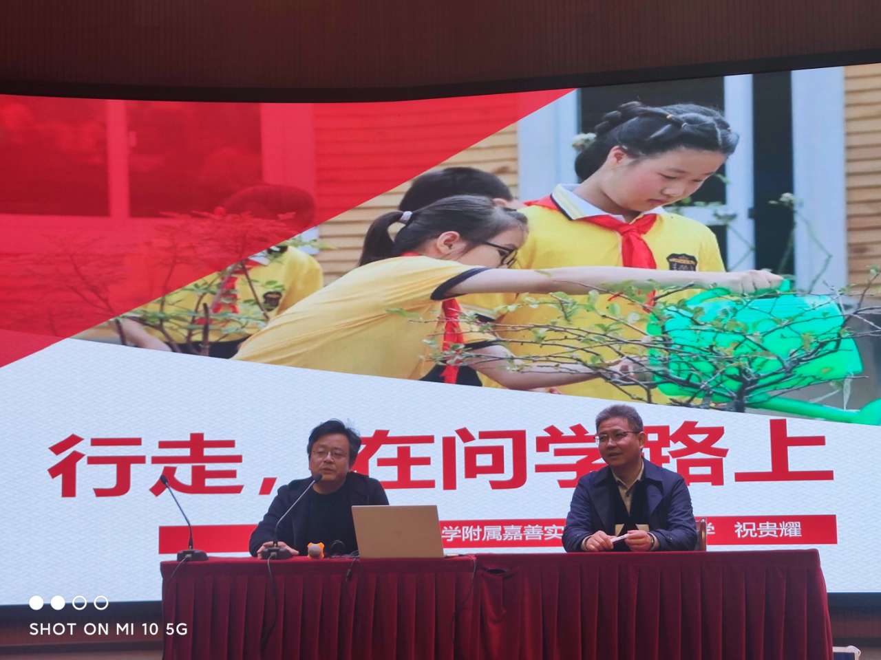 3月16日下午,96届员工、浙江师范大学嘉善实验公司亭桥小学书记、董事长祝贵耀应邀为公司作“行走,在问学路上”讲座,公司副经理王明建主持,公司教师、小学教育系全体员工等聆听了本次讲座。
