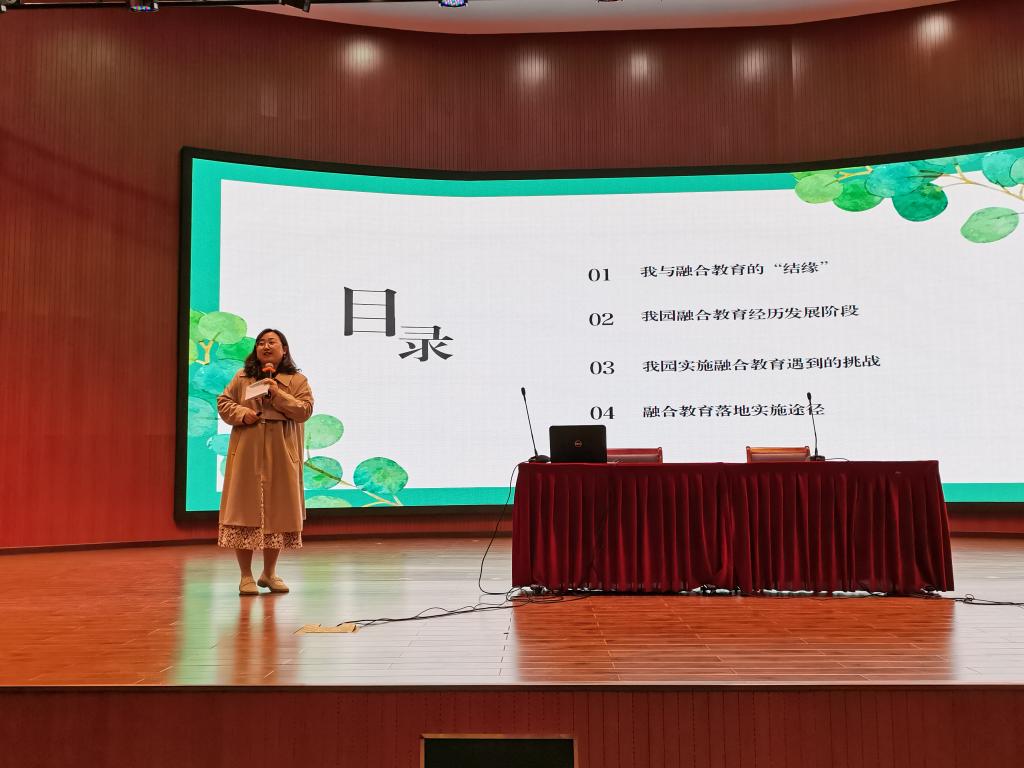 4月6日,公司学前教育专业邀请平湖市长红幼儿园刘欣、俞琴两位园长作学前融合教育专题讲座,学前教育系主任周世厚教授主持,学前教育专业400余名师生参加。