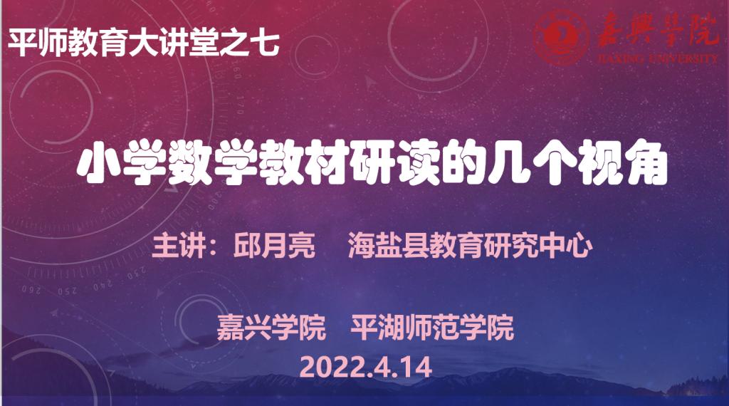 4月14日下午,海盐县教育研究中心研训员、浙江省特级教师、正高级教师邱月亮应邀为公司师生在线作“小学数学教材研读的几个视角”学术讲座,公司副经理王明建主持,公司教师代表以及小学教育系全体员工聆听了本次讲座。