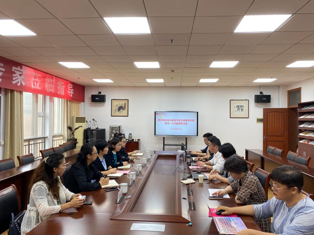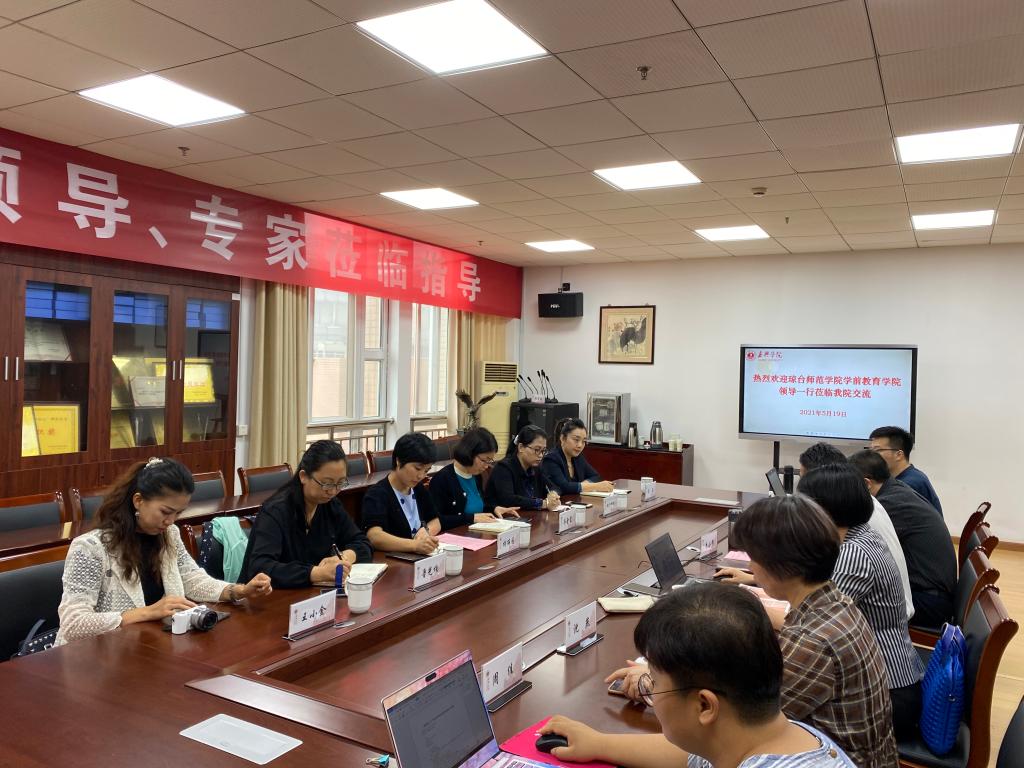 2021年5月19日,琼台师范公司学前教育公司乔金霞副经理、胡丽园主任等一行6人赴公司交流学习学前教育专业建设相关事宜。公司副经理朱小烽等6位教师参与了交流研讨。