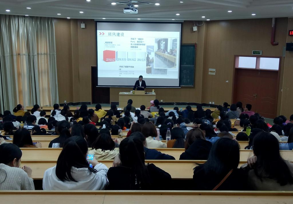 2017年10月25日中午12:30,师范公司在阶梯教室二开展“文明班级”评选活动。参评班级分别从班级概况、思想建设、班级特色等方面对本班作出详细的介绍。最后,唐曦老师指出了准备此类班级答辩活动时所需要注意的问题,同时对新生班级寄予厚望。