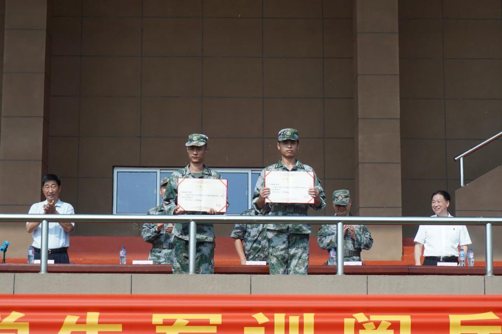 阅兵礼毕,李勇宣读军训标兵寝室、军训优胜排、军训优秀学员、军训优秀教官和军歌大合唱等优胜名单,优胜单位和个人有序上台领奖。