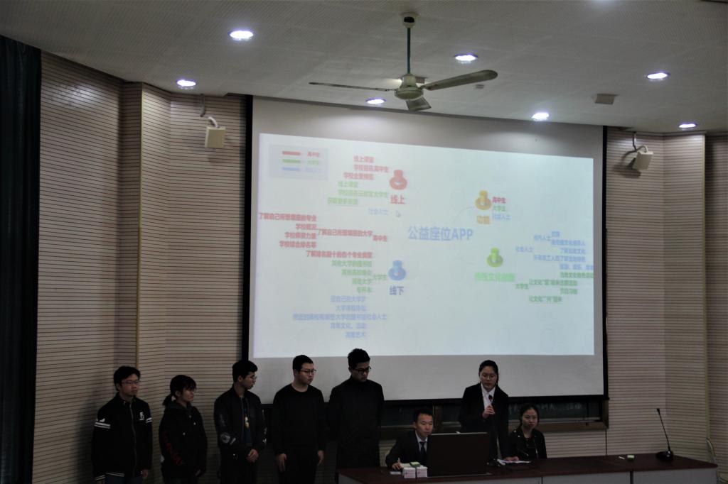 比赛由主题陈述、职业体验感悟、现场答辩三部分组成,共有扶、“小白狗”智能拐杖、校园二手市场、公益座位、WantE App、今日考证等六个团队脱颖而出进入决赛。大赛现场,六支队伍就创业项目、市场背景、营销策略等进行了详细的讲解,充分展示了各自项目的特色,并精彩对评委老师的提问进行答复。