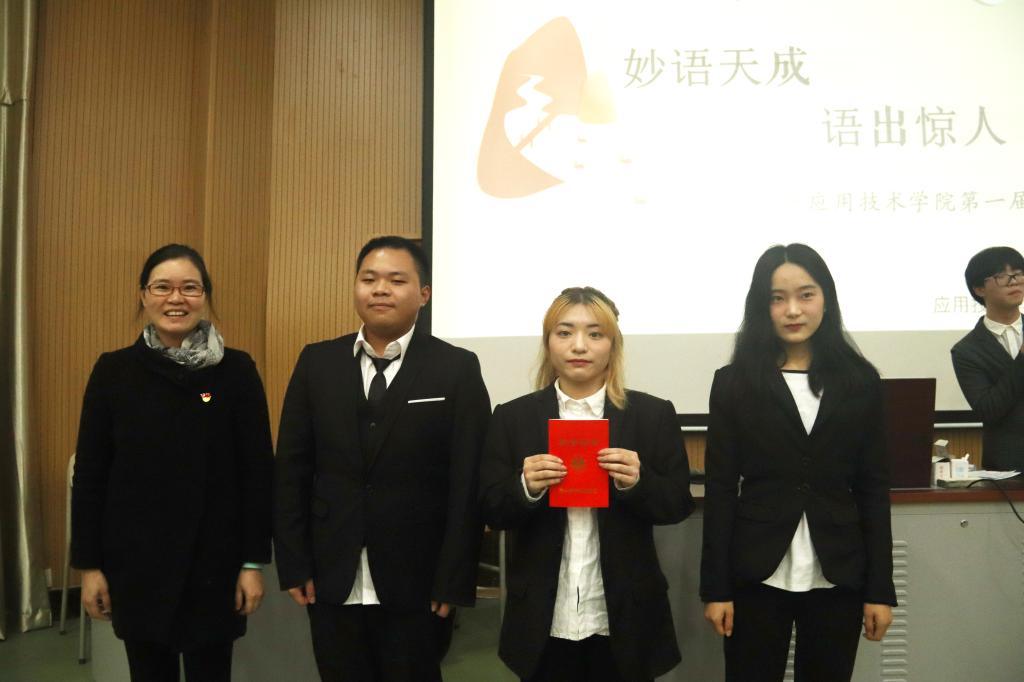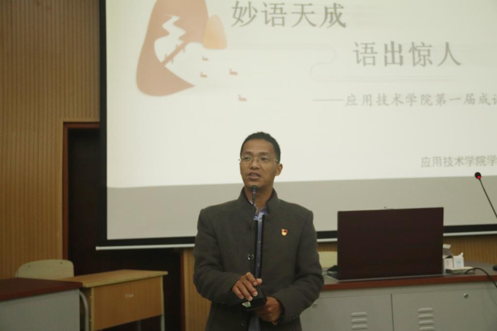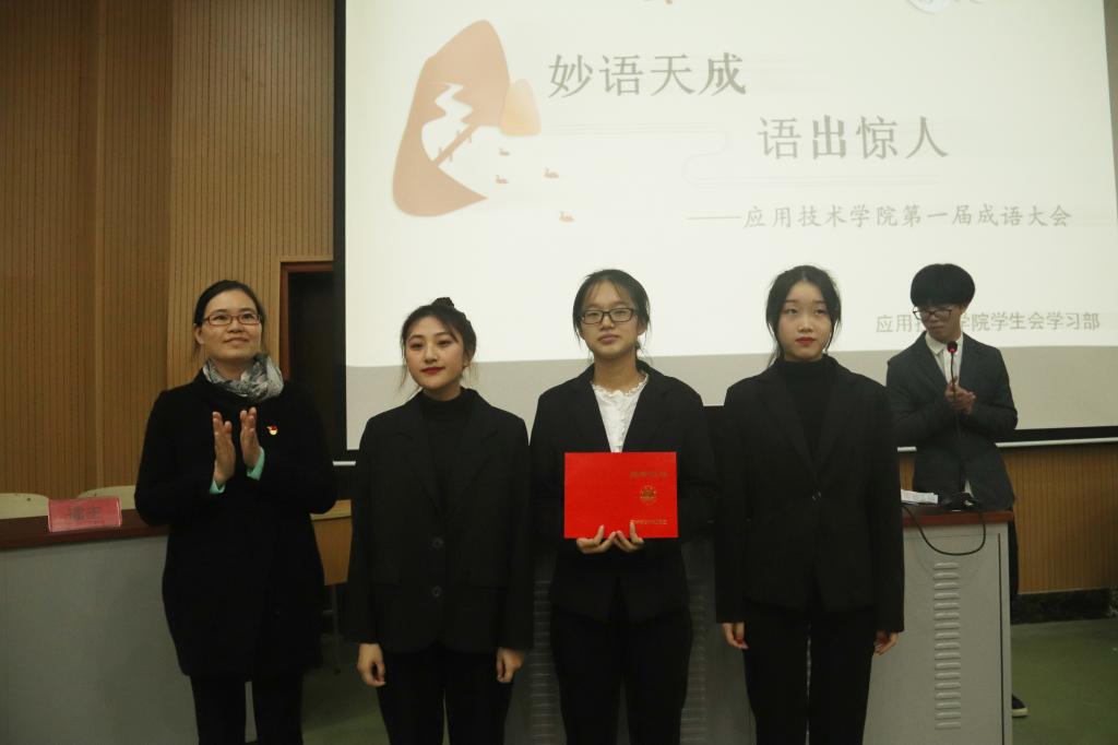 12月6日晚,应用技术公司首届成语大赛于阶梯教室二正式开展。公司党总支副书记冯伟芳老师、学工办主任卓海丹老师担任评委。本次比赛共有60余人参赛,最后三支队伍的9名选手挺进决赛。