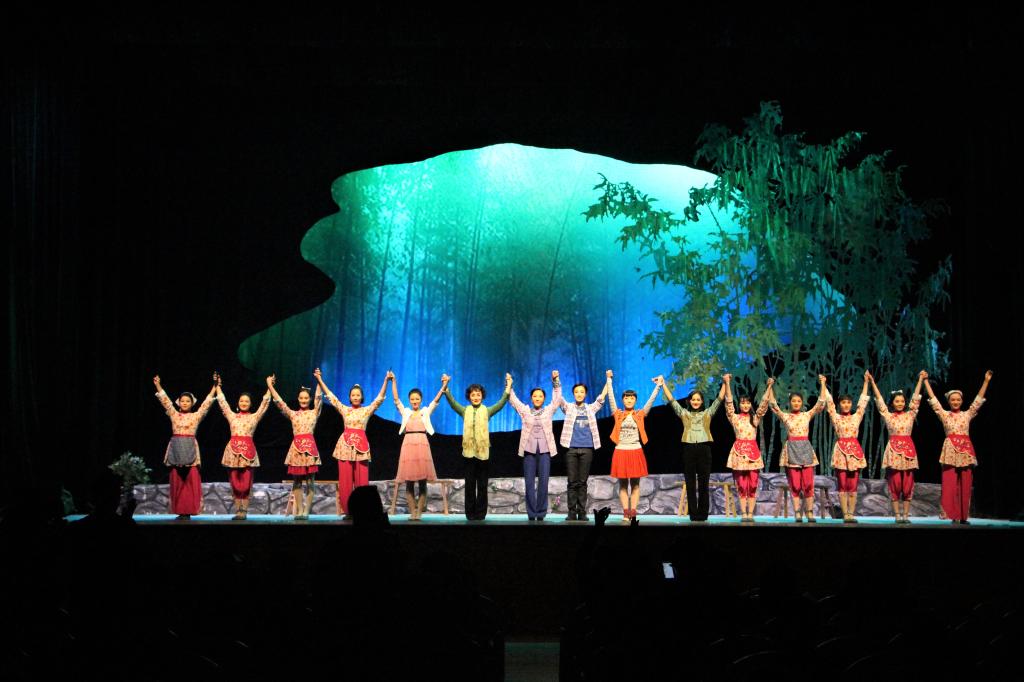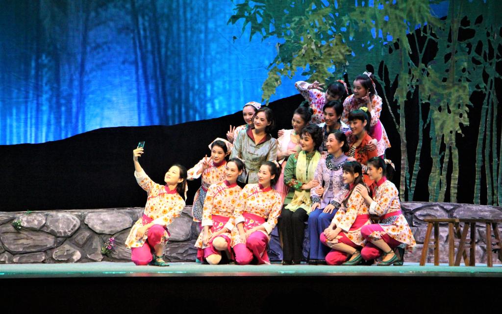 现代题材越剧《德清嫂》以德清县道德模范蒋引娣、封丽娟等人为故事原型人物,讲述了一位善良的农家大嫂抚养一对孤儿的动人故事。整场演出极具情节性,演员们将优美的语言腔调与夸张的肢体动作相配合对每个场景进行了极为生动的描述,通过细腻的表演将观众带入情境中,引发了观众的共鸣。