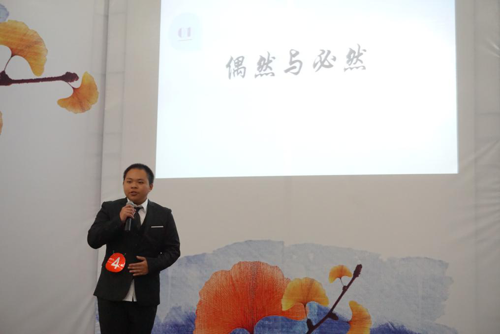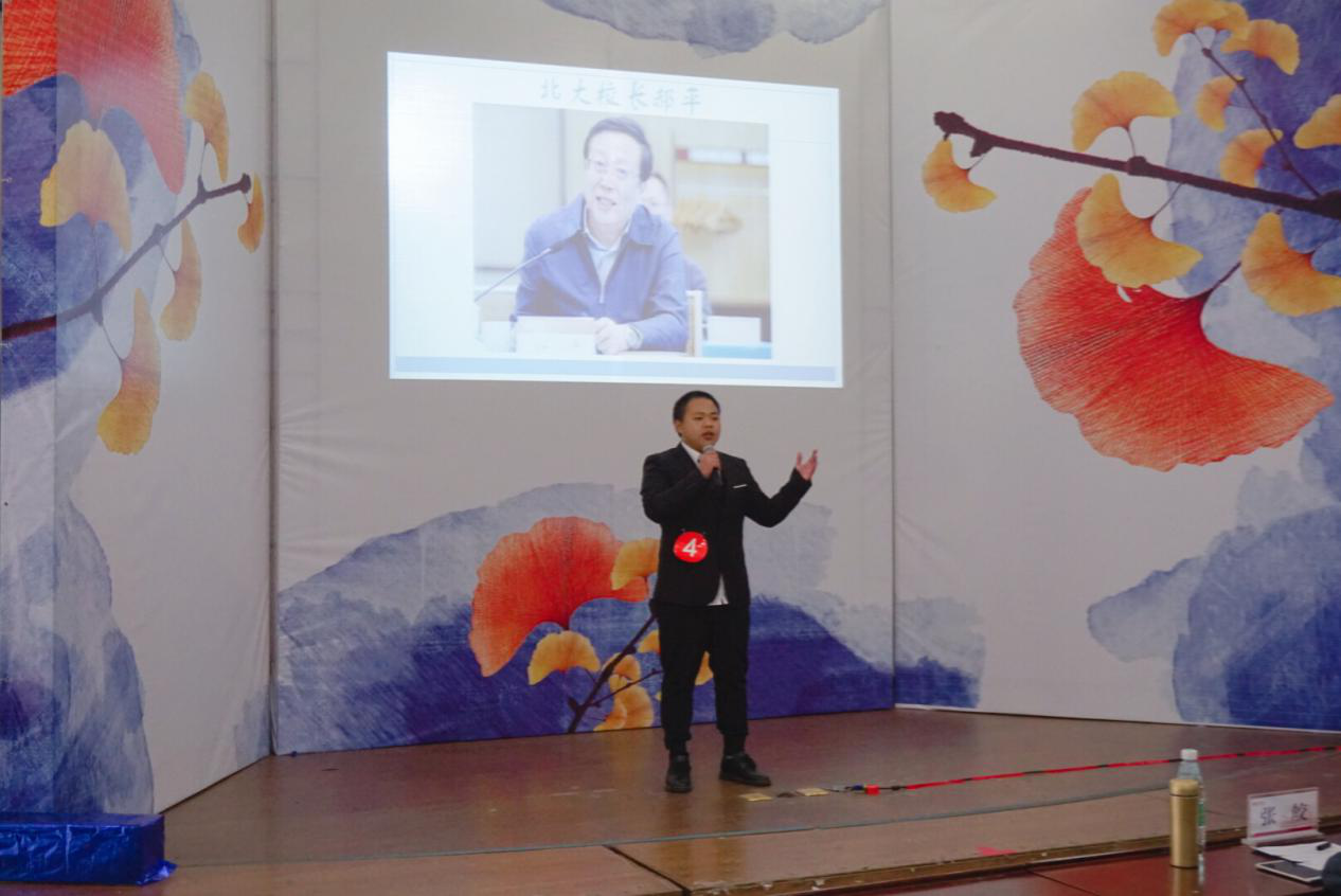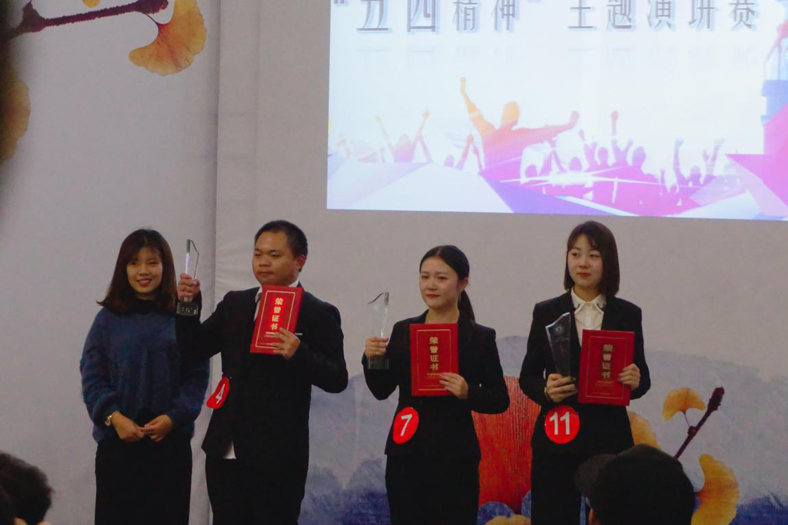 比赛分为三轮。第一轮比赛围绕“五四精神”进行演讲。王天宝同学育五四魂,圆青春梦”为主题进行脱稿演讲,用饱满的情感来诠释他对五四精神的理解。“外争国权,内诛国贼”等话语听得全场观众热血沸腾,并以第三名的成绩挺进6强。第二轮比赛是两一组进行抽题演讲,这一轮比赛更考验了选手的随机应变能力和知识的储备量。第三轮比赛由第二轮胜出参赛选手自选题目进行演讲。经过激烈的比赛王天宝同学荣获三等奖。