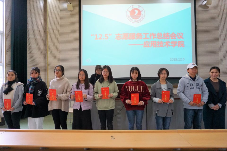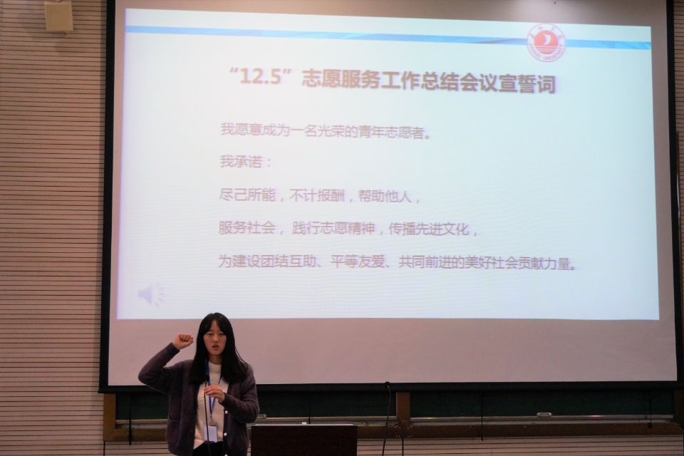 12月5日中午,应用技术公司在阶梯教室一开展了12·5国际志愿者日志愿服务周总结大会,110名同学到场参加。