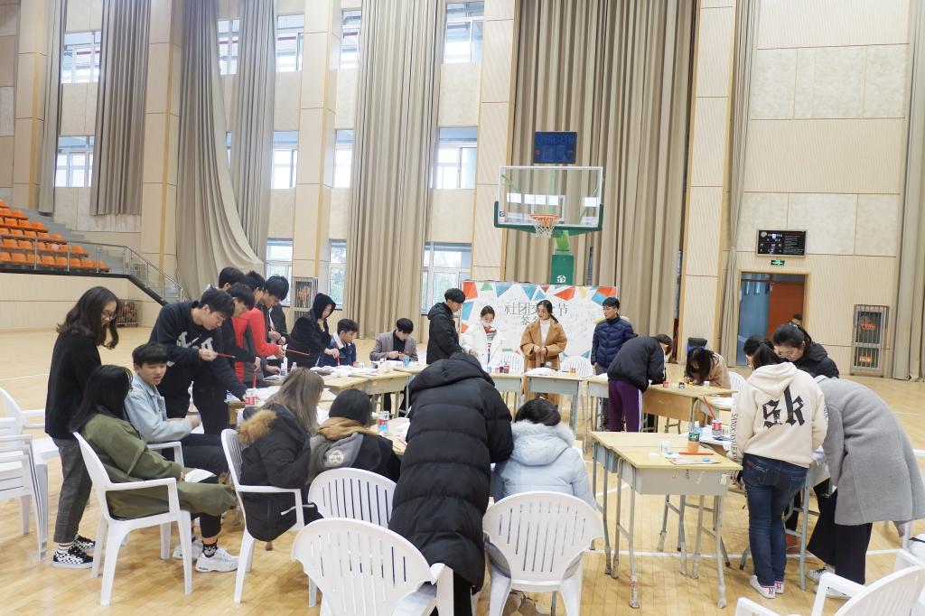 12月1日中午12:30,一反之前寒冷潮湿的天气,今天的校园有了些生气。黑火创意设计协会的社员们陆续来到室内篮球馆,开始布置场地。同学们十分迅速地将桌椅摆好,拿出一早准备好的白T恤、手机壳和手绘石头。