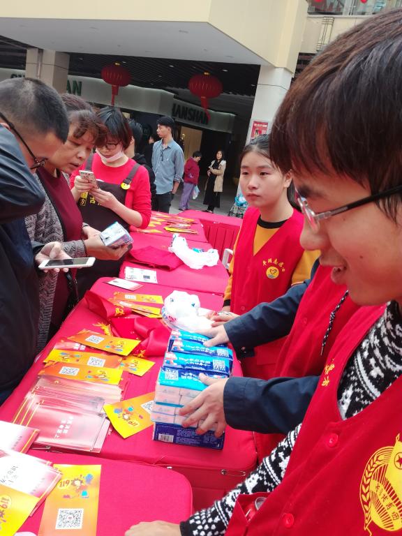 启动仪式结束后,消防大队开展了学习消防知识,送精美礼品的活动。在场群众只要扫描消防知识公众号,认真学习消防知识。便可获得精美礼品一份。志愿者忙中有序,一边招呼着大家遵守秩序,一边向大家派送礼品。在这个活动结束后,还有剩下的消防安全宣传册。志愿者将余下的宣传资料分组,分别派送给广场里的消费者和商家。商家纷纷表示感谢,并表示加强消防安全是对自己的店铺以及顾客的安全负责。数十分钟后,宣传资料被派送一空。志愿者圆满地完成了任务。