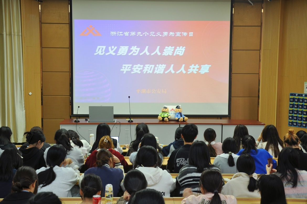 11月18日,公司见义勇为日宣讲活动于阶梯教室三顺利开展。平湖市见义勇为先进人物陈易宁、祝广川应邀主讲做报告,100余名师生代表参加。