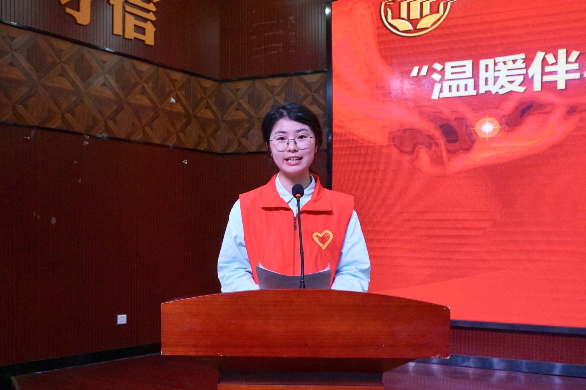 公司志愿者代表陈一涵发言,她代表承诺志愿者们将精准对接学习需求,制定具体辅导方案,用实际行动助力困难家庭儿童、青少年的成长与发展。