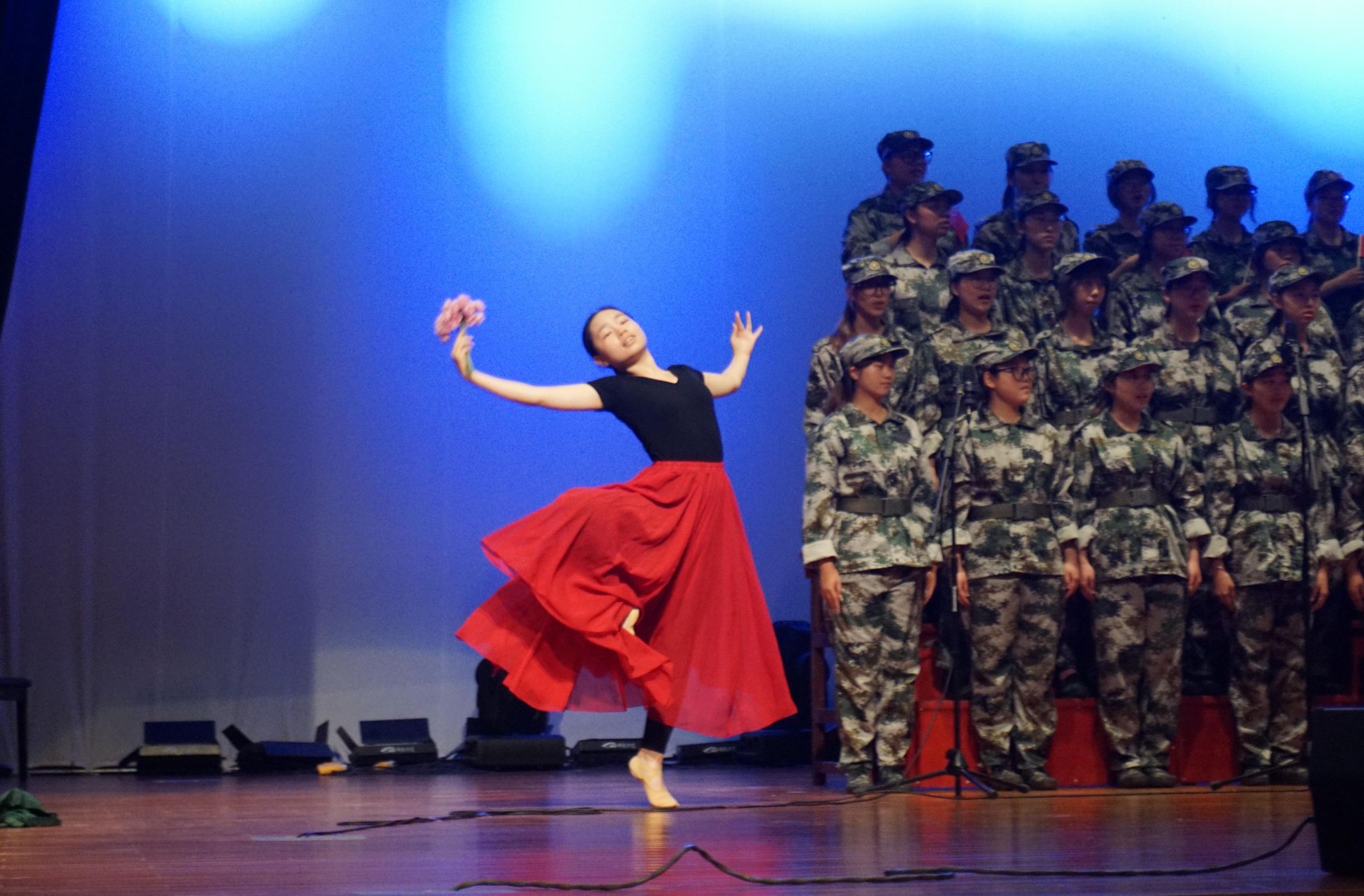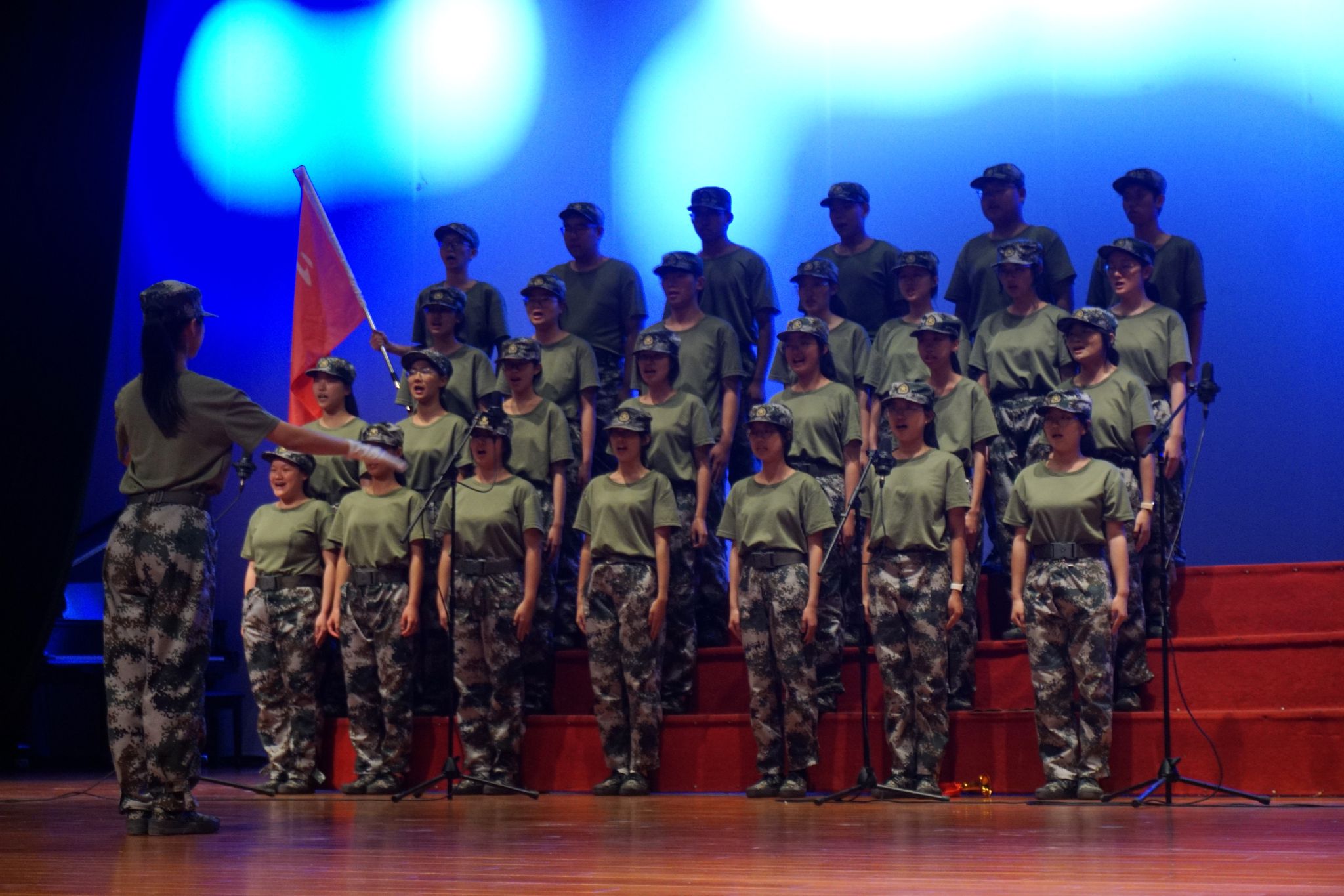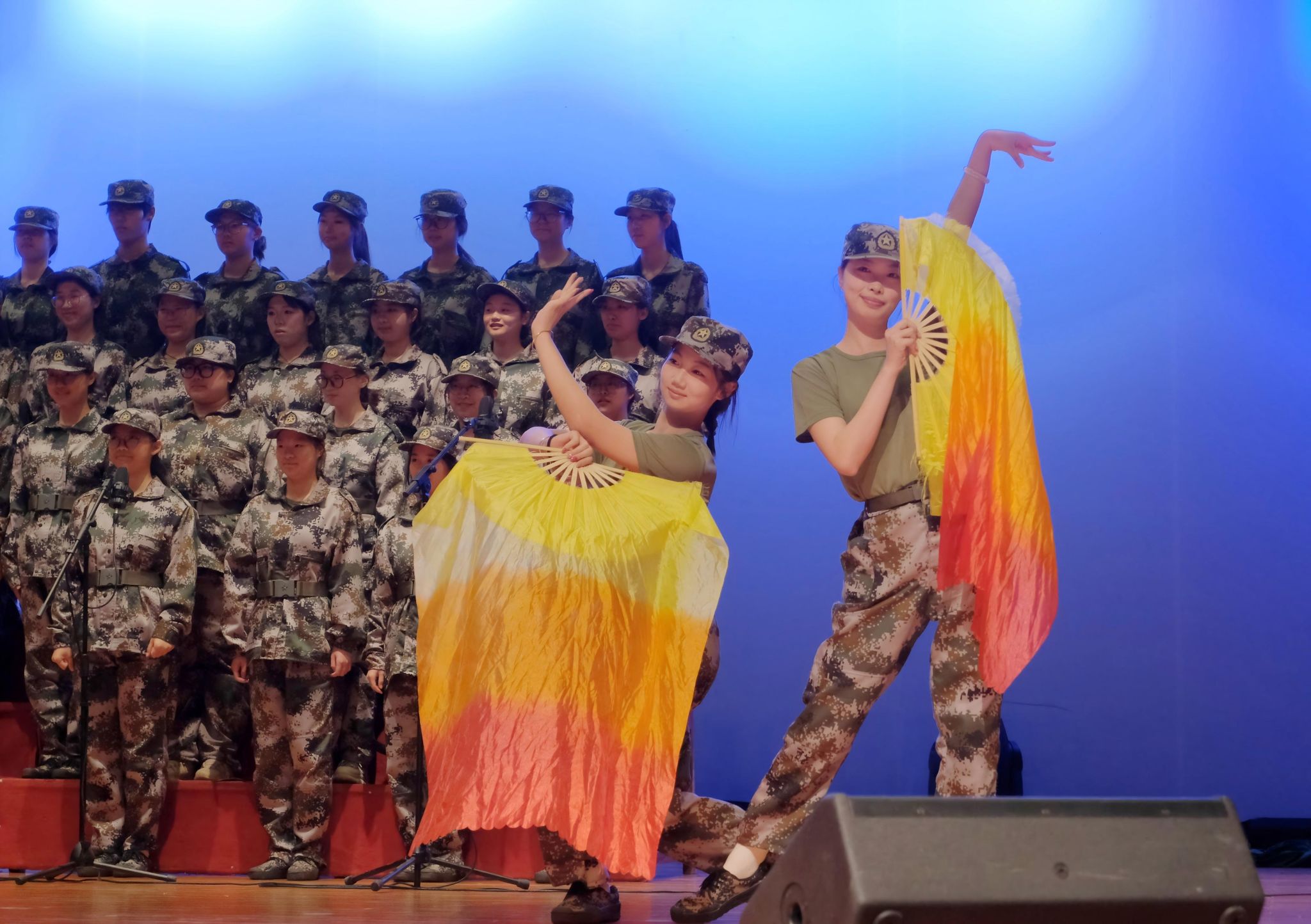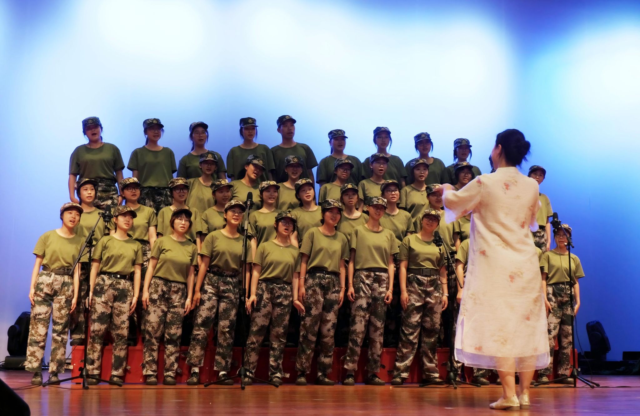 比赛紧扣“薪火百年,军歌献党”主题,精选《共和国之恋》《万疆》等经典红色曲目。各参赛队精神饱满,和声铿锵,展现出新时代青年的昂扬风貌。学前教育专业的同学们将专业特有的温情融入家国情怀,用清澈歌声表达对祖国山河的深情眷恋;小学教育及体育教育专业的学子则以激昂旋律,唱响了“育人为本”的使命担当,传递出中华儿女的坚韧底色;商务英语、应用日语专业的同学们,巧妙融合国际视野,在歌声中抒发深厚的爱国热忱。各排表演风格各异,但都将军训中锤炼的团结协作与坚韧意志,深深融入每一个音符。