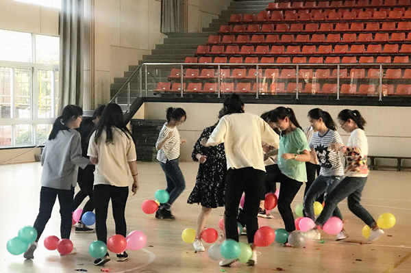 从报名到现场参与,同学们热情高涨。值得一提的是,在“爱爆抱”这一游戏环节中,轻松愉悦的踩气球舒压活动与刺激的抢人抱团活动将同学们的参与热情激发到了最高点,同学们在活动的过程中展现出了非凡的活力。