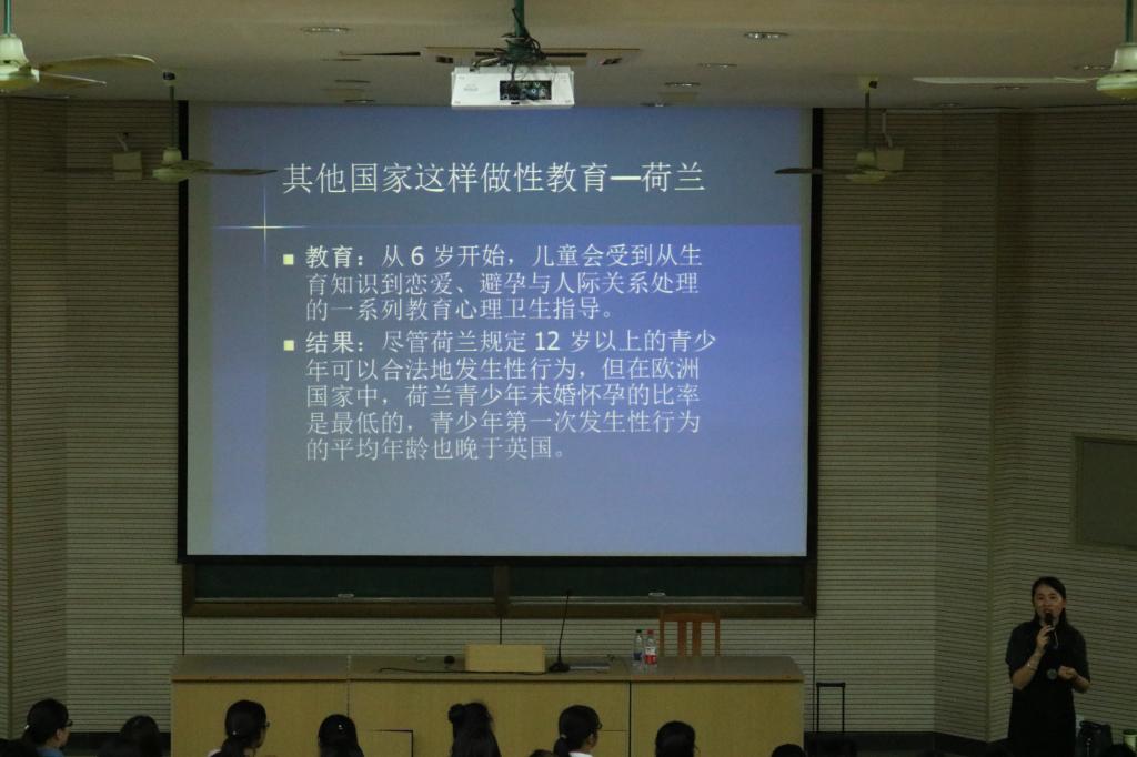 讲座中,汤医师将自己在20余年工作中接触到的典型案例作为话题导入,根据女老员工身心发展规律和特点,从相关背景、青春期生理与常见妇科疾病、避孕知识、对爱情、性和责任的探讨等四大方面为同学们展开了专业讲解。围绕爱情问题,她通过与同学们进行了交流互动、深入探讨,引导同学们树立正确的爱情观,呼吁女老员工关注生殖健康,学会正确保护自己。在讲座过程中,同学们积极思考,受益良多。