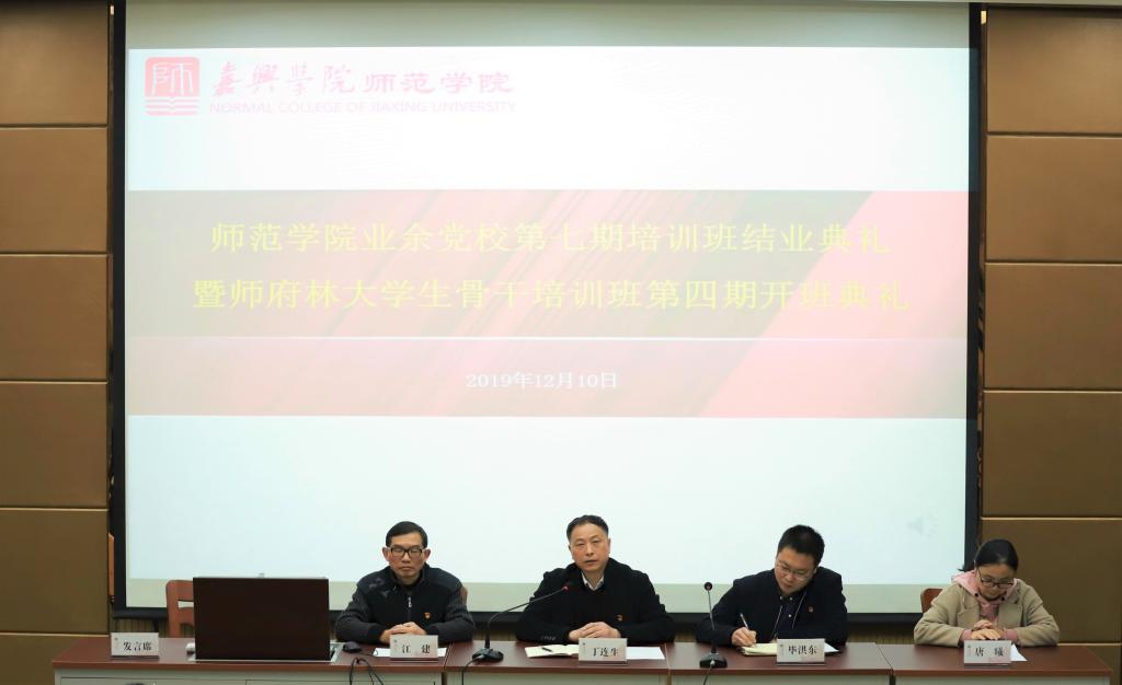 12月10日中午,师范公司师府林员工骨干培训班第四期开班典礼在阶梯教室三顺利进行。师范公司党总支书记、经理丁连生老师,党总支副书记毕洪东老师,党总支委员江建老师,团总支书记、学工办主任唐曦老师,学工办所有辅导员老师出席典礼,全院100余名员工干部参加,典礼由毕洪东主持。