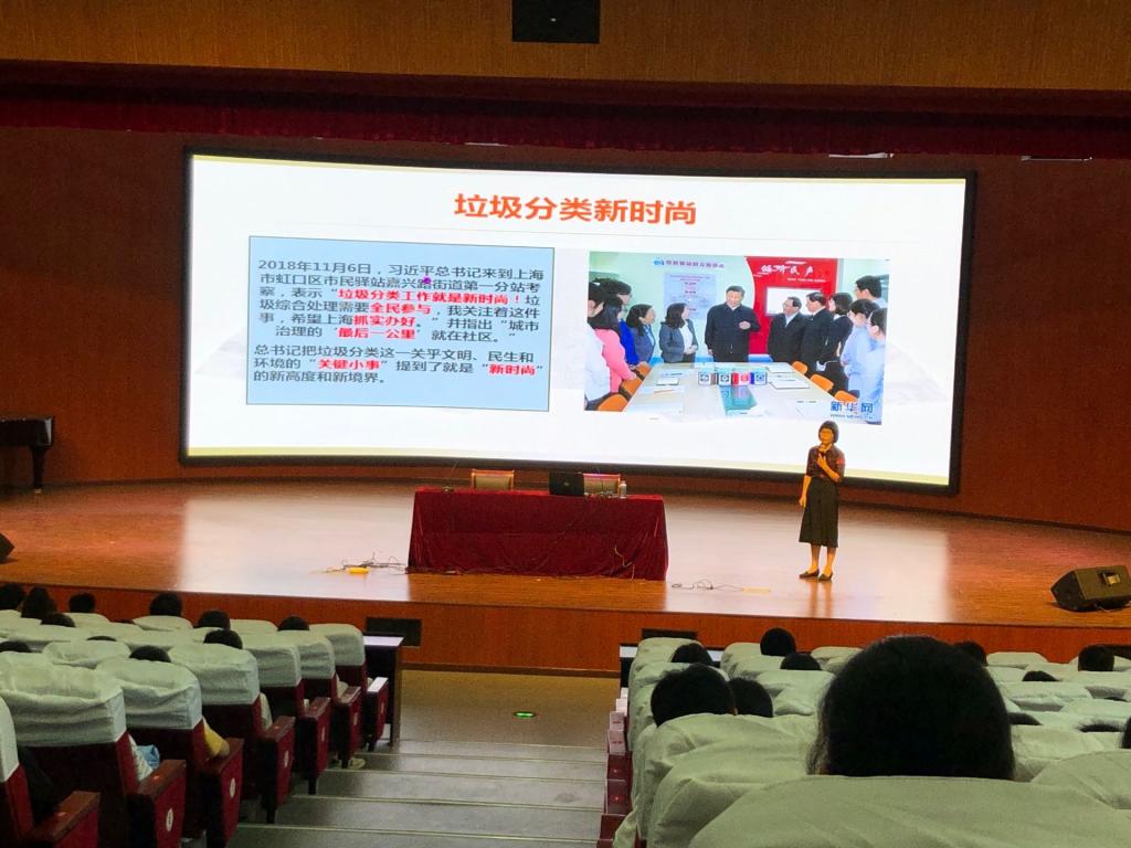 9月19日下午3:15,应用技术公司组织开展的“垃圾分类,你我参与”垃圾分类宣讲会在报告厅顺利举行,平湖市生活垃圾分类办公室冯岚应邀主讲,2019级大一新生聆听了宣讲。
