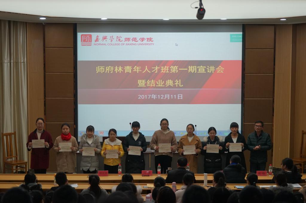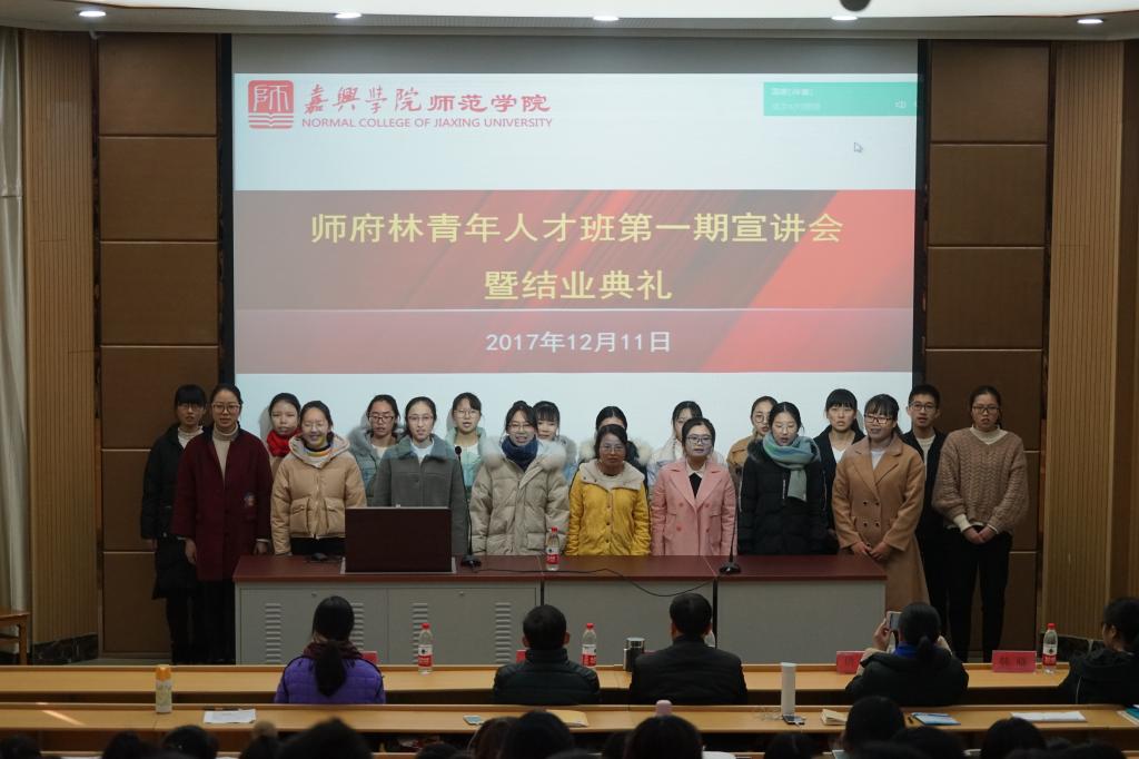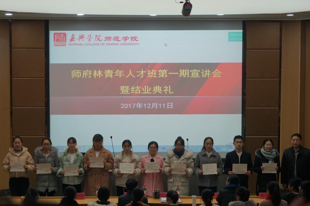 12月11日中午,师范公司师府林青年人才班第一期结业典礼暨总结宣讲会在阶梯教室三顺利举行。公司党总支书记、经理丁连生,党总支委员江建出席活动;学工办、团总支全体辅导员,师府林青年人才班第一期全体学员,2016级、2017级员工代表参加活动。公司党总支副书记毕洪东主持典礼。