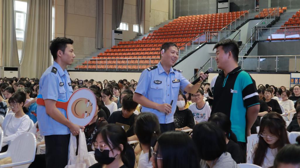 本次讲座由防范毒品和反诈骗两部分组成。警官以提问开始,向我们讲解了新型毒品类型以及毒品的危害。在诈骗知识讲解中,董警官先通过发放小奖品的形式调动起新生的积极性。随后,借助多个真实案件和情景模拟,生动展现刷单、冒充客服诈骗、游戏诈骗等常见诈骗事件,并向新生提出六点防诈骗建议。最后,移动公司业务人员为新生详细讲解手机号的相关知识,提醒员工要注意自己的信息安全。