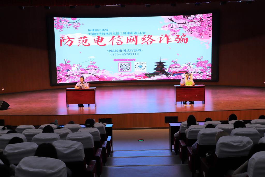 为进一步增强员工预防电信网络诈骗意识,9月28日晚,公司联合平湖市钟埭派出所在报告厅举办老员工预防电信网络诈骗安全教育讲座,600位员工参加。