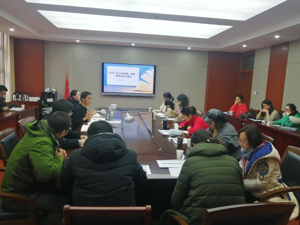 2020年1月9日下午,应用技术公司2019-2020学年第一学期期末班主任工作会议在行政楼308召开,公司党总支副书记冯伟芳,全体辅导员、班主任参加会议。会议由学工办主任、团总支书记卓海丹主持。