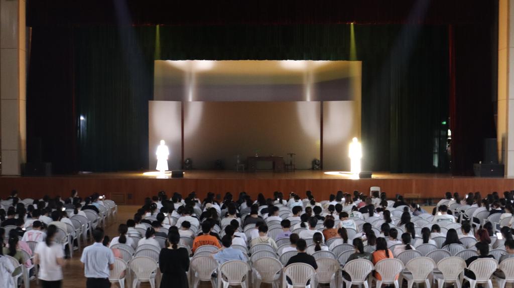 2023年6月1日晚上,嘉兴公司原创话剧《初心》在体艺楼进行演出,公司2022级员工及师生党员共600余人观看本次演出。