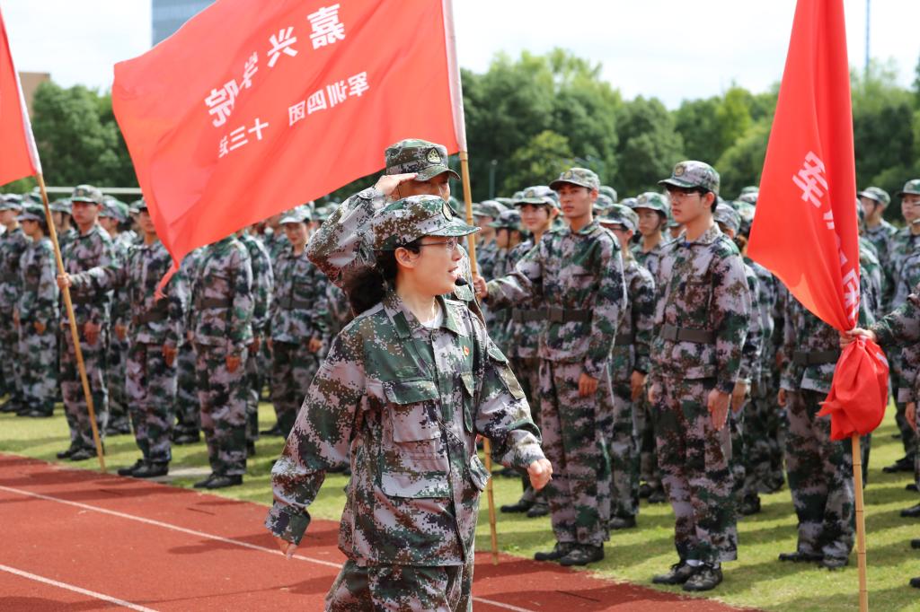 军训优秀学员代表、来自服装与服饰设计专业的方宁同学代表全体参训同学发言,表示作为新时代的青年和红船旁的学子,将积极践行对党和人民许下的“请党放心、强国有我”的坚定承诺,为实现中华民族伟大复兴的中国梦贡献青春力量。