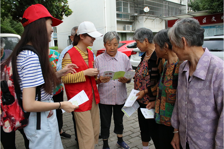 76—78日,烈日炎炎,团队成员穿着钟埭街道垃圾分类办公室的志愿者服装,手拿垃圾分类宣传单和问卷调查分别在关帝庙和吾悦广场分发宣传单和填写问卷调查。我们还采访了不同人群对垃圾分类这一重大问题的看法,有公司负责人环卫工人保安员工等