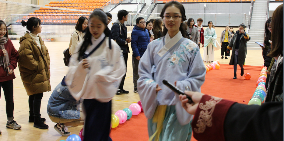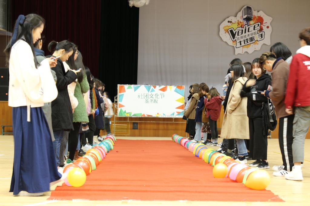 经过几天的忙碌,社团联合部的同学早已准备好道具,布置好场地,提前在现场等待各社团代表和同学们的到来。中午12:30,社团文化节开幕式准时开始,首先是由青苹果俱乐部的Lohas团队成员为大家带来了精彩的街舞表演,热情的舞蹈融化了空气中的寒意。紧接着的是Micro疯社团的乌嘉豪同学进行现场吉他弹唱,带动了现场的气氛。随后社团联合部部长陈延同学致辞,为大家讲解本次社团文化节的相关事宜,鼓励各社团积极开展活动,展现社团文化。最后进入了整个开幕式最重要的环节——走红毯签名环节。每位社团代表在身着汉服的汉服社成员引导下走向红毯,在签名板上签下自己的名字。
