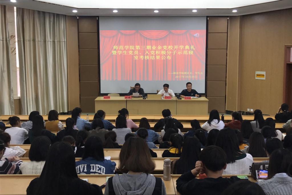 2017年10月26日下午,院第三期业余党校开学典礼九点员工党员、入党积极分子示范寝室阶段考核结果公布在阶梯教室三举行。公司经理、党总支书记丁连生老师,党总支委员江建老师出席,此次活动由党总支副书记毕洪东老师主持,第三期业余党校学员以及班主任参加。同时公司全体员工党员、入党积极分子也参加了此次活动
