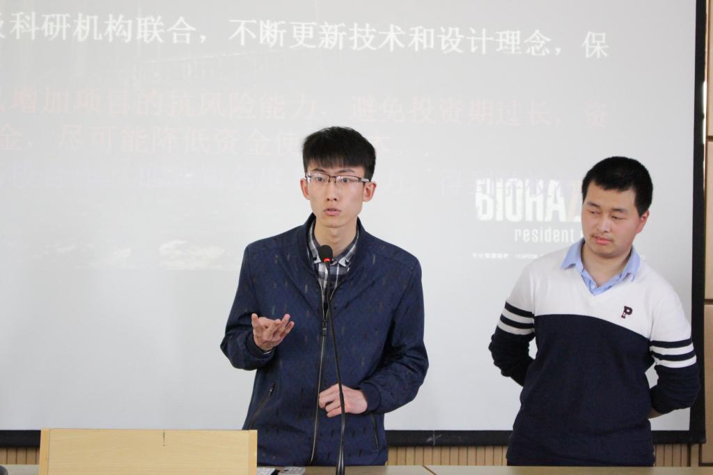 在答辩中,“Future Star”团队的阮晨晨同学以其新颖的创业构想,拉开了本次比赛的序幕;“方圆”团队,以“只要你有能力,只要你敢上台,我们就给你平台”的理念,提出“员工兼职教员工”的学习平台;来自物流管理152班徐小宝同学以宠物需求量提升为出发点,切实抓住消费者心理,提出“宠物圈”app的构想;“渡布人”团队将自己的创业理念与非物质文化遗产相结合,以“九张机”为品牌,提出了颇具特色的创业设想,富有吸引力;“美丽乡村智慧嘉人”团队紧扣新农村文化建设的主题,展示了美丽乡村文化经纪公司的创业设计,方案成熟完整、切实可行,赢得了评委老师的赞赏。
