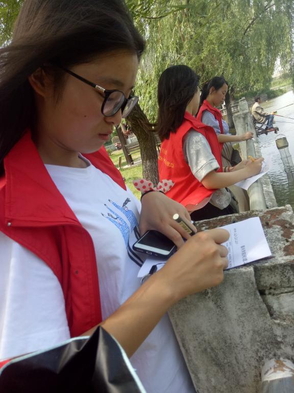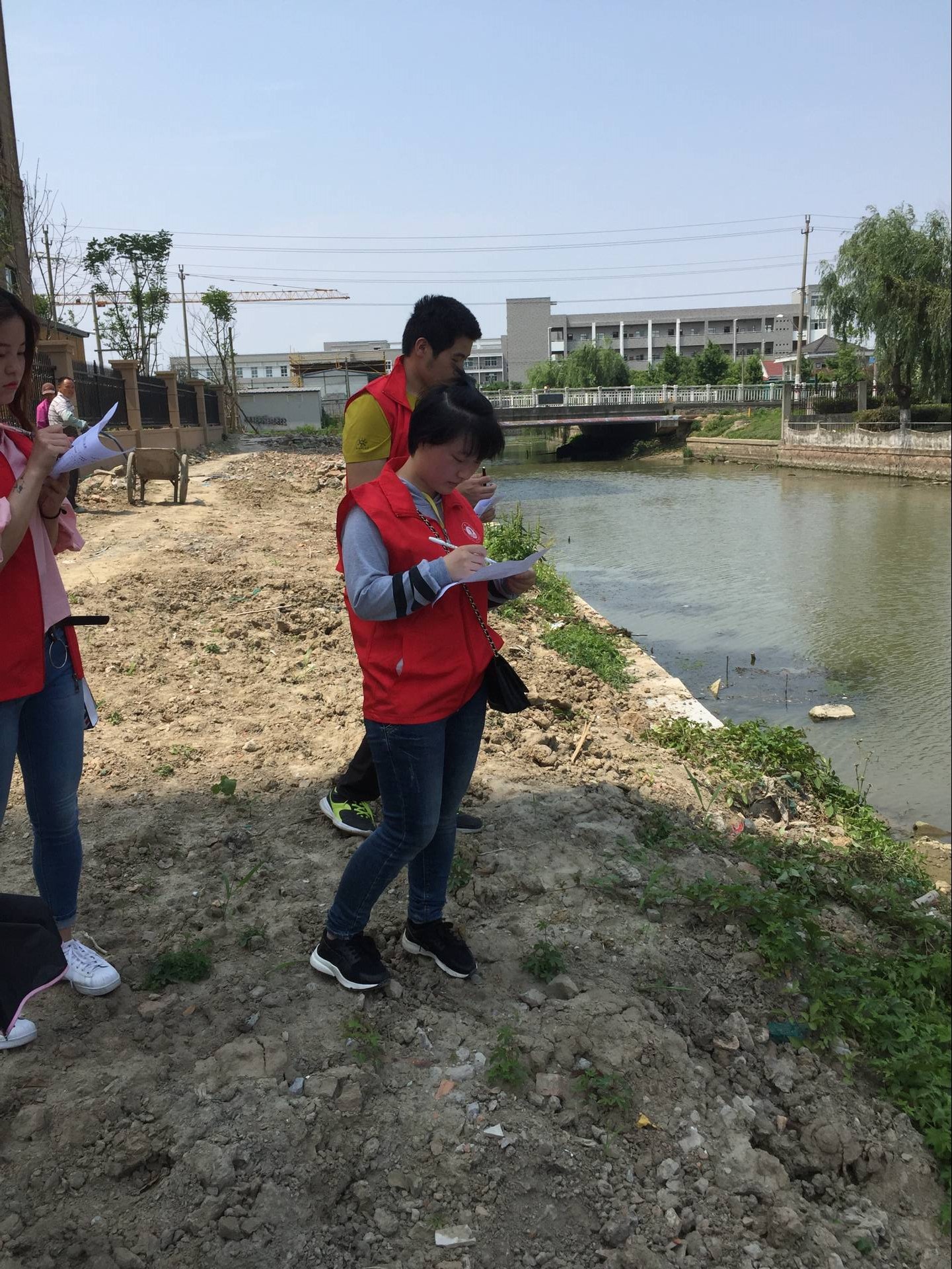 2017年5月20日13,青春治水团队的应淑梅、李婷、许静、黄粟婧等共10名志愿者,赶赴钟埭街道陆家桥社区周边的河道进行了一系列的巡河活动。