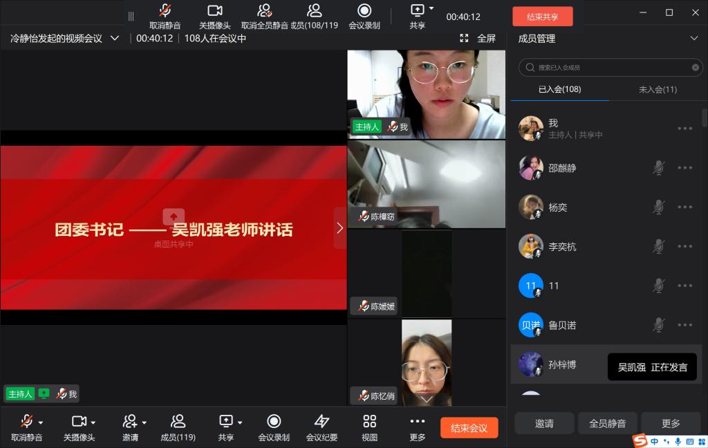公司团委书记吴凯强表明省第十五次党代会是浙江省迈入高水平全面建设现代化的重要节点召开的一次标志性会议,是浙江进入高质量发展建设共同富裕区域新征程召开的第一次党代会,具有重大的政治意义和战略意义。指导全体员工干部对于浙江省第十五次党代会相关报告进行研读,要求同学们对于报告中的内容进行系统化、科学化地理解,主动把握“5大战略指引”、“11方面重要遵循”、“两个先行”等理论知识。在提出五点建议与要求的同时,表达了对同学们的殷切期望,通过对袁家军书记讲话的再次解读,鼓舞同学们不断在学习党的创新理论中滋养初心,坚持以奋进践使命,以实干显担当,在实现民族复兴的道路上奋勇争先,奋力书写不负韶华、不负时代、不负祖国的人生篇章。