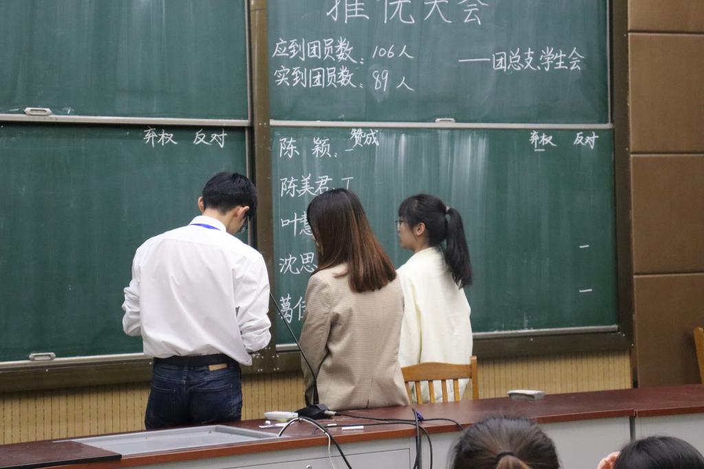 会议伊始,先由楼雨青同学宣读本次推荐入党积极分子候选人名单,并说明推选流程。其次,候选人依次上台发言,介绍个人事迹、阐述学习和工作情况、表明入党决心并总结自身不足。最后,由原师范公司员工党员之家发放选票,采取无记名投票的方式推选。经过公平、公正、公开的投票、监票、唱票和计票环节,张慧婕等八位候选人的票数均过半,均可推荐为入党积极分子进行培养考察。此次团组织、员工会推优大会在紧张的计票环节后圆满结束。