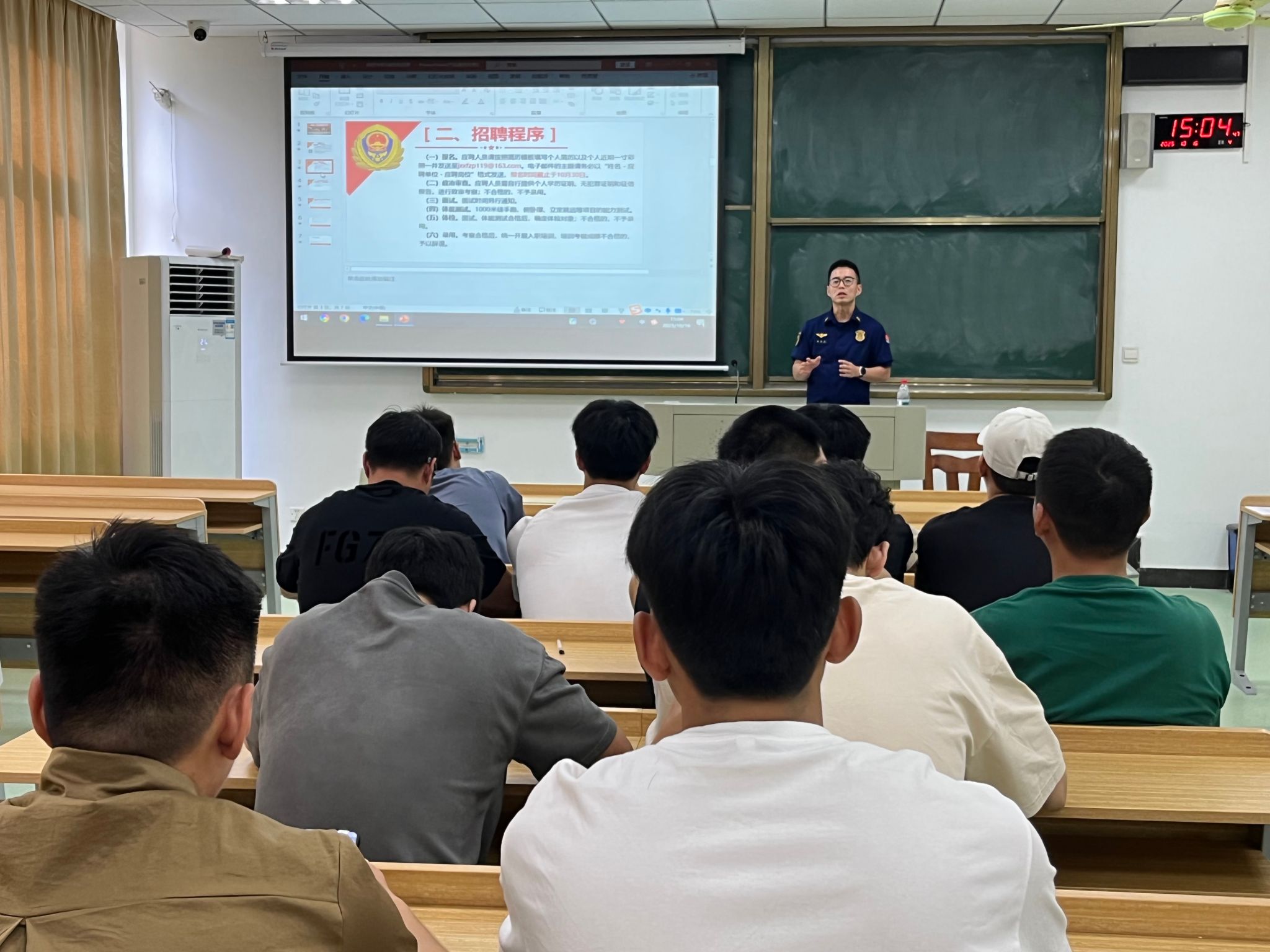 10月16日下午,平湖市消防大队应邀来公司作嘉兴市消防救援政府专职消防员招聘宣讲,宣讲由平湖消防大队当湖站曹佳顺站长主讲,体育教育专升本专业同学到场聆听。