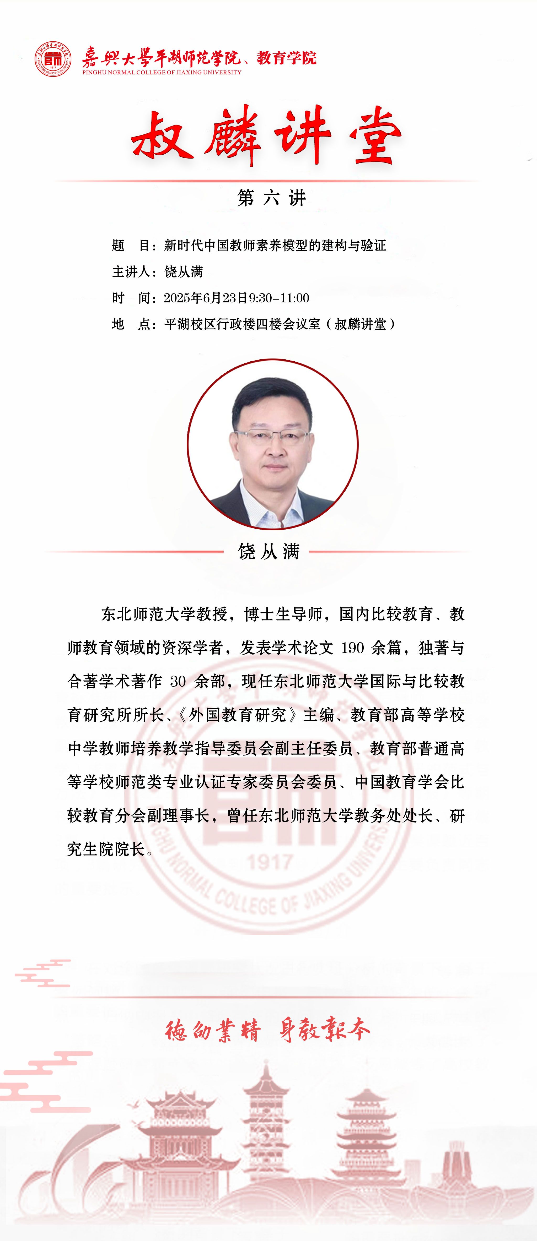 叔麟讲堂第六讲预告:新时代中国教师素养模型的建构与验证