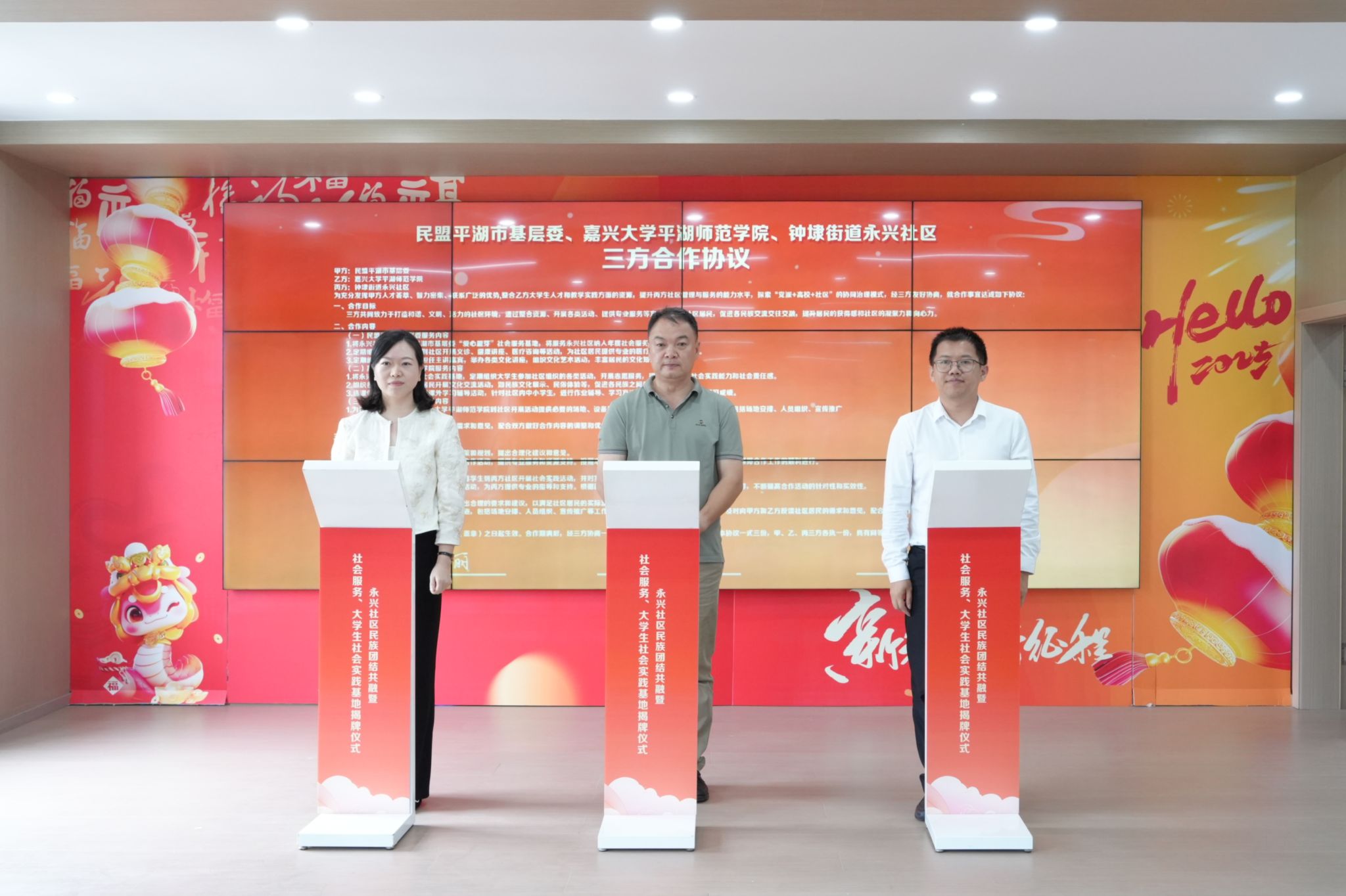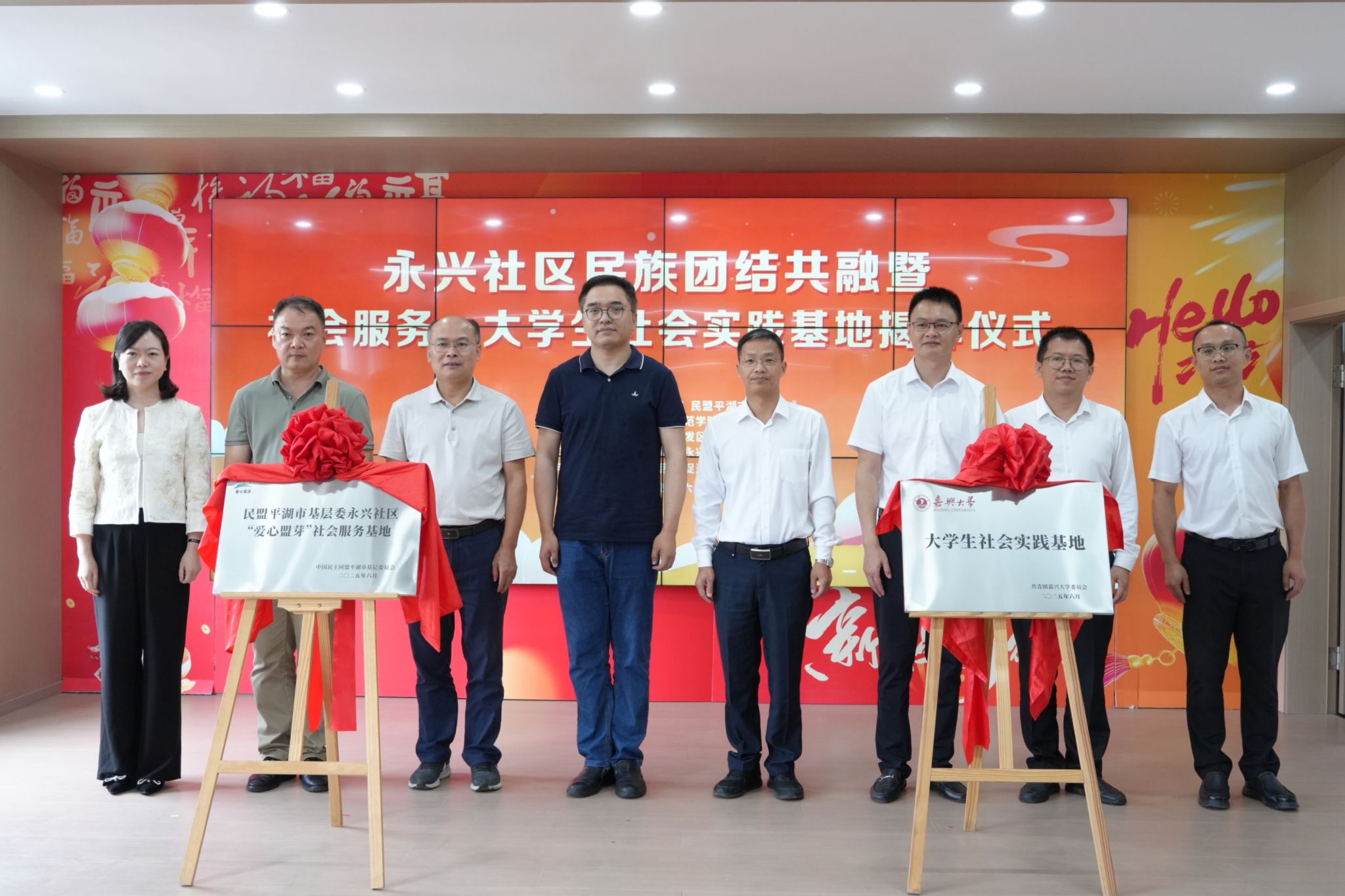 6月12日下午,公司与民盟平湖市基层委、永兴社区在永兴社区党群服务中心共同举办了民族团结共同体、志愿共同体暨老员工实践基地揭牌仪式。民盟嘉兴市委会专职副主委严浩、中共平湖市委统战部常务副部长林国平、民盟平湖市基层委员会副主委潘彩丽、公司党委书记冯伟芳等出席仪式。