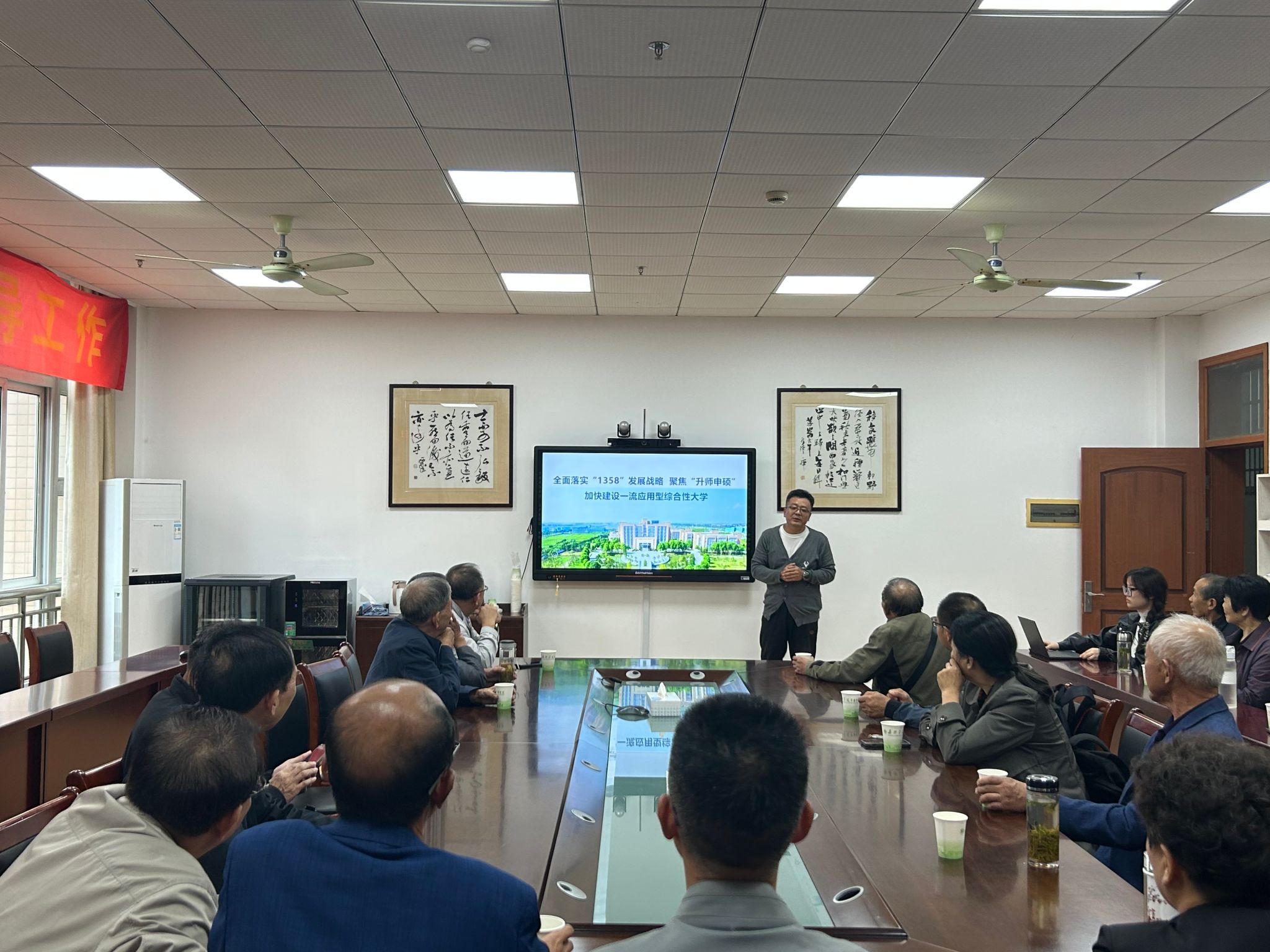 王明建对员工们重返母校表示热烈欢迎,对员工们关心支持母校的建设与发展表示感谢。并围绕“落实‘1358’战略、聚焦‘升师申硕’,全面推进公司高质量发展”主题,从公司基本情况、团队队伍、红船精神育人、应用型人才培养、社会服务和硕士学位点建设等方面介绍了公司近年来的发展情况。